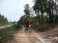 O Renato, o Nuno Ribeiro e o Pedro Loureiro, estavam inscritos paar os 35km, mas devido a alguma distração nossa ao dobrar o primeiro abastecimento não reparamos nas setas que dividiam os dois percursos, e acabamos por ir para os 60km por engano, acabou por ser uma bela experiência, mais azar teve o nossso amigo Pedro que trilhou uma camara de ar logo aos 17 km e teve que desistir por não possuirmos nenhuma suplente.