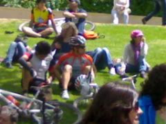 á chegada ao Aquapolis, no passadeiro de madeira mesmo junto ao rio e cheio de lodo ,que o João e o Pedro Pires não se aperceberam, caindo imediatentemente e simultaneamente, sujando o nosso lindo equipamento (eh eh) sendo que a "menina" do Pedro Pires partiu o dropout, impossibilitando-o de prosseguir, pois nao conseguimos arranjar  equipamento desse suplente. (foi uma pena sem duvida)