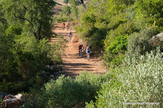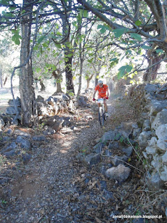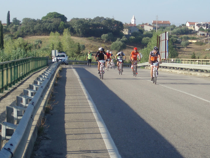 Prontos para a partida depois de sairmos de Abrantes as 7h50 e ja com os dorsais na nossa posse, chegada a local da partida, estacionamento relativamente facil, zona da meta com som claro e audivel com as informações necessarias para todos os participantes, partida a horas e com os primeiros quilometros em alcatrão ate aos cerca dos 4km seguindo piso de terra rolante até aos cerca de 10km em que uma primeira e dificil parede partia o pelotão até ao km 13 onde se dividia a meia da Maratona. Nesta altura o Bifa era obrigado a parar devido a uma quebra de tensão logo ao km 5, o P.Pires ja tinah tido um aindisposicao com paragem de digestao logo ao km 6, a "talega" do R.Valerio teimava em não entrar ao saltar constantemente a corrente, e la na frente seguia a bom ritmo o J.Serras ,M.Lopes e R.Rosado.