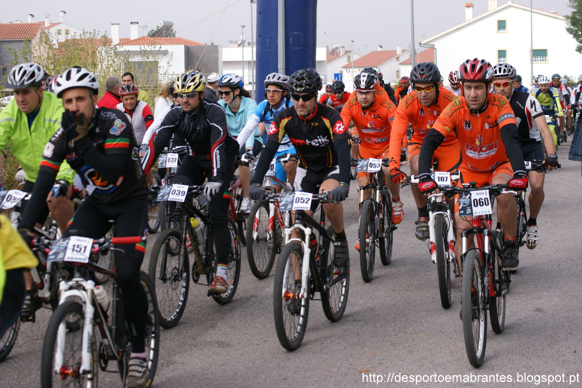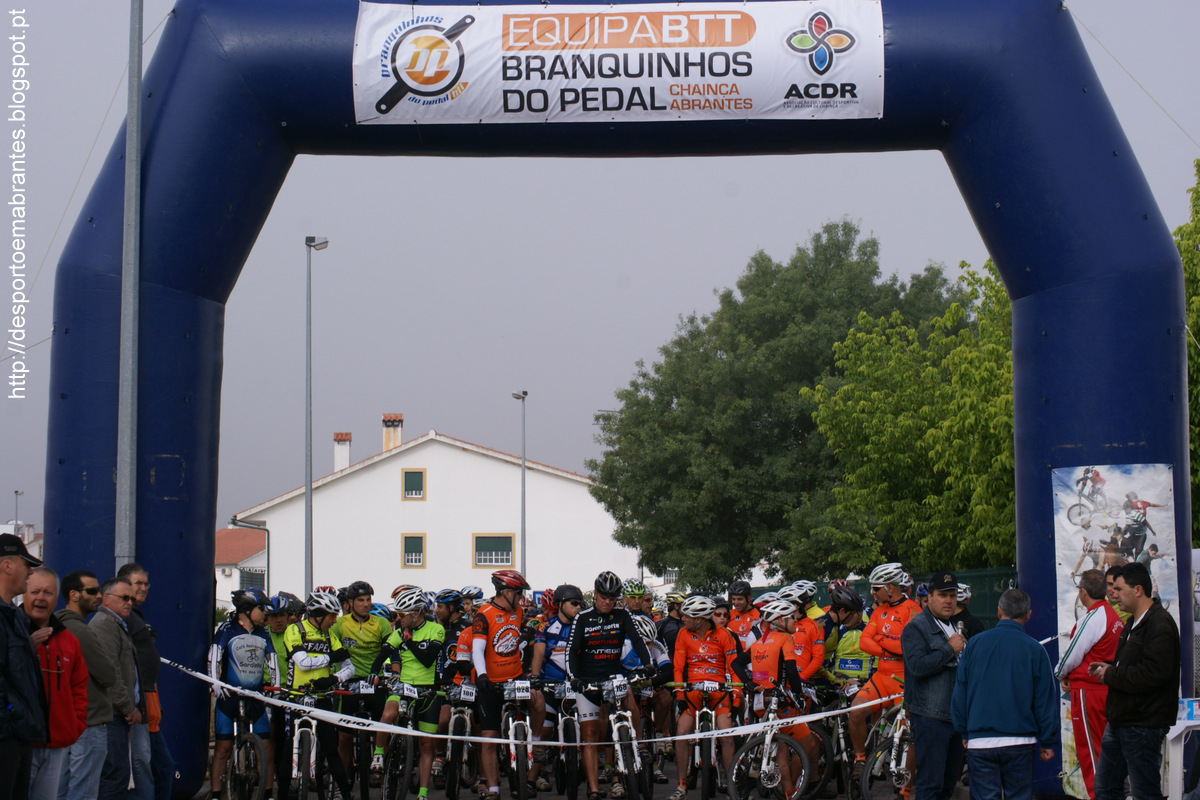Primavera laranja com inicio frio e final quente e confortavel, foi assim que a partida os 17 zyberianos inscritos (2 deles nao poderam participar por motivos pessoais) se apresentaram nesta maratoa dos nossos amigos e vinhos dos Branquinhos do Pedal, com partida mesmo no coração da Chainça, um pelotao de cerca de 210 atletas á partida, e uma Primavera com uma temperatura que rondava os 8º a partida, controlo zero,estacionamento e logisitca a funcionar, partida pratcamente a horas depois de estarem reunidos os pressupostos de segurança para os primeiros quilometros em alcatrao (cerca de 2km) entrada em terra a subir ..