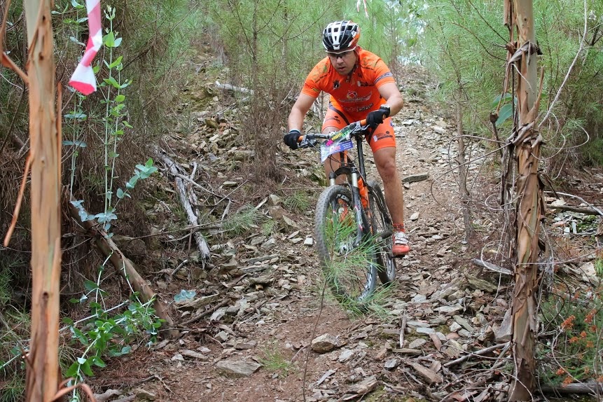 Continuando o seu bom momento de forma seguia bem nos 20 primeiros quando um furo sensivelmente aos 15km o fez perder muito tempo, optando depois por ao apanhar ja na parte final o Carlos e Tiago Fernandes (25km) seguiu com eles até final disfrutando ao máximo os singletracks e demais trilhos.