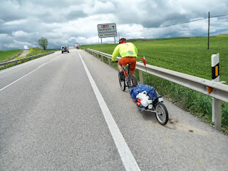 rolar e rolar e rolar, ...que dia para esquecer o Renato vinha com dificuldades musculares desde o inicio da etapa que era so a mais longa..sem os caminhos sem os peregrinos e sem viver o espirito, esta tornou-se a etapa para esquecer..