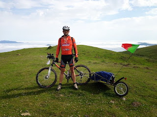 La começamos a subir, e que subida, é indescritivel a dureza, não ha palavras, são 5km a subir com 18% a 22% de inclinação puxando o trailer de 5kg mais 13kg de carga tornava-se uma missao quase "herculea" chegando a terra ao final de 5km la fizemos uma pequena pausa e ja tirando os manguitos e pernitos começando a dislumbrar a paisagem.
