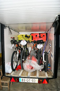 A escolha recaiu sobre os traillers, o peso deles variava entre os 5.1kg e os 7.1 do Manuel Maia, iam nos levar a França em carro com atrelado que acondicionaria as bikes e sacos e iam nos busar a Santiago ou 2 dias antes caso fosse necesário.
