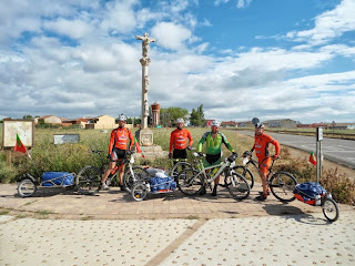 Em relação ao previsto tinhamos ficado a cerca de 12km de Sahagun, e hoje iamos tentar fazer esses quilometros em falta, tinhamos descansado bem, as bikes estavam limpas e lubrificadas e seria o ultimo dia com os traillers, arrancamos cedo em relação a vespera e as 7:50 ja estavam a pedalar recuperamos o espirito e animação em relação ao 3º dia e parte do 4º, muitos peregrinos e um inicio com um ligeiro sobe e desce até chegarmos a SAHAGUN.