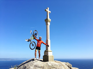 Levantamo-nos mais tarde cerca das 8h, demoramos a sair da cidade de Santiago já que tivessemos que atravessar toda a cidade e recorrer a gps para encontrarmos o caminho para Finisterra não sabiamos de estaria marcado, 4km depois de Santiago la demos com o caminho que se ecnontrava bem marcado como todo o caminho que tinhamos feito, onde encontramos alguns peregrinos, seguiamos novamente num sobe e desce onde tivemos de enfrentar logo a primeira dificuldade o "MONTE DEL CARBALLO" Seguiamos com mais um dia de lindos trilhos, paisagens lindissimas, florestas de encantar, sem duvida uma das mais belas etapas, a 18km do cabo Finisterra avistavamos o mar de um topo de um monte, e onde iriamos seguir sempre junto ao mar os ultimos quilometros um final em extase desta aventura, onde as dores ja ninguem as sentia, e ja pensavamos no regresso de carro que iriamos fazer logo de saída até Abrantes onde chegamos de madrugada.
