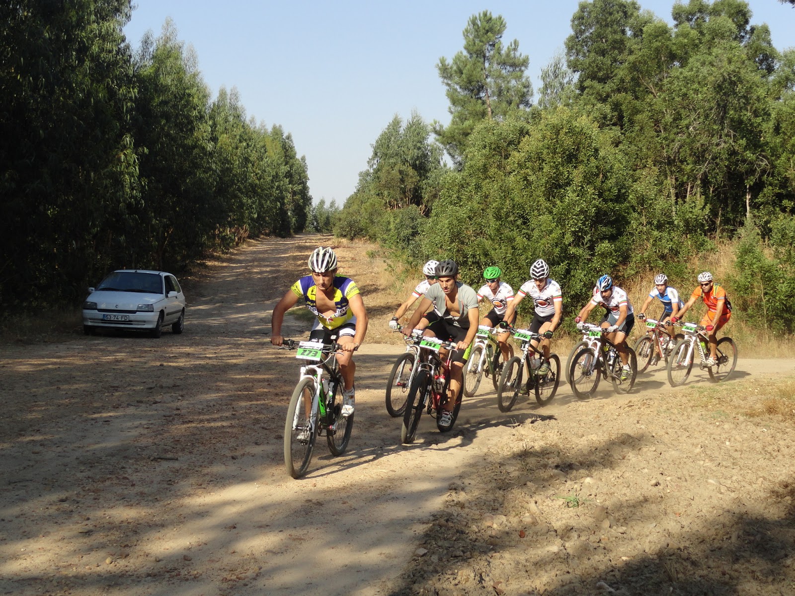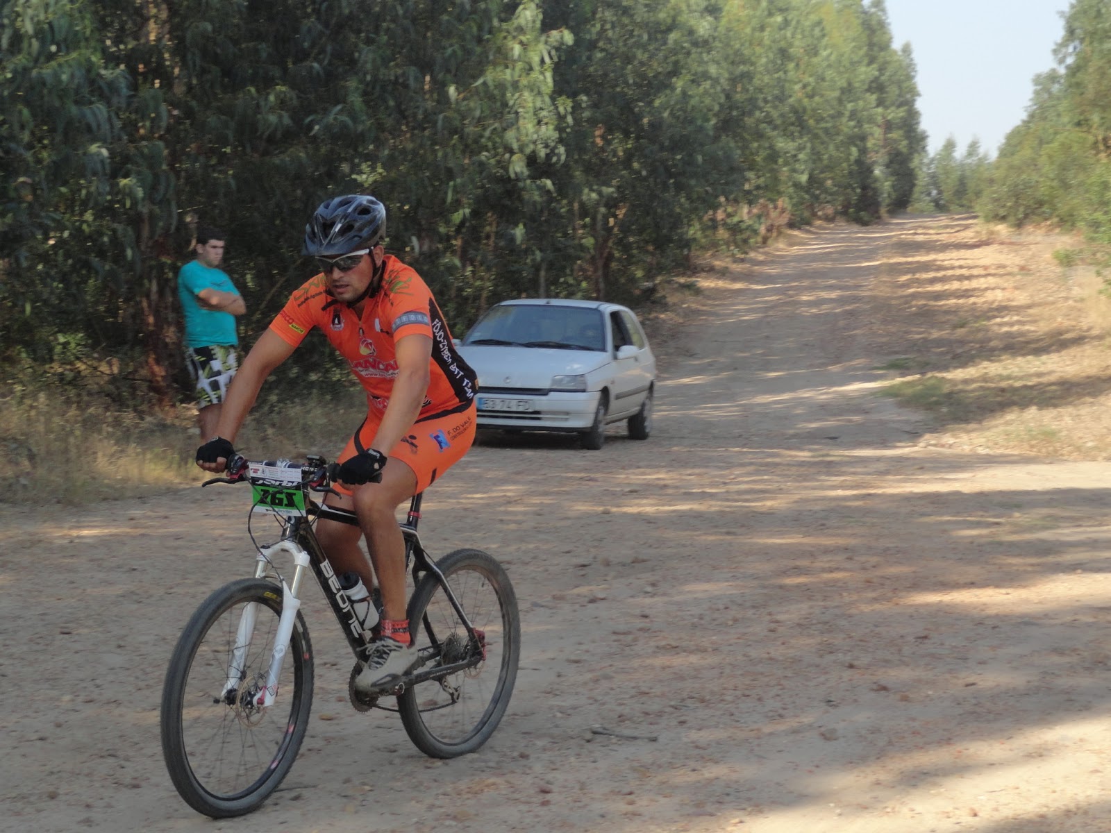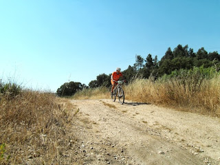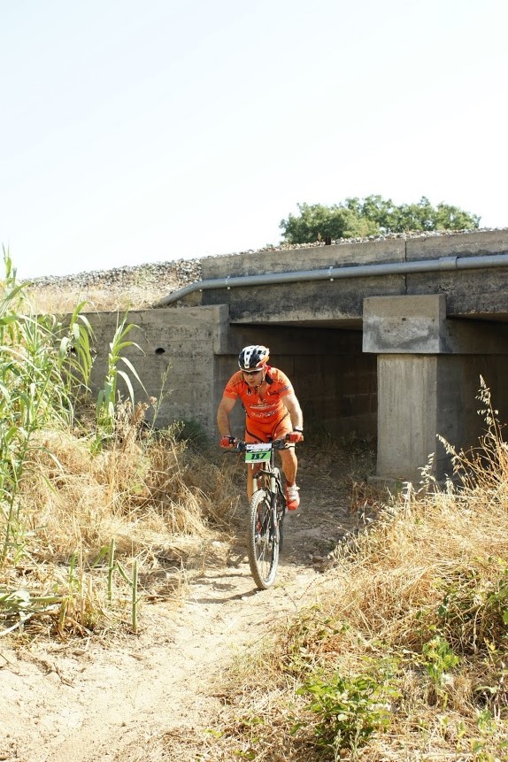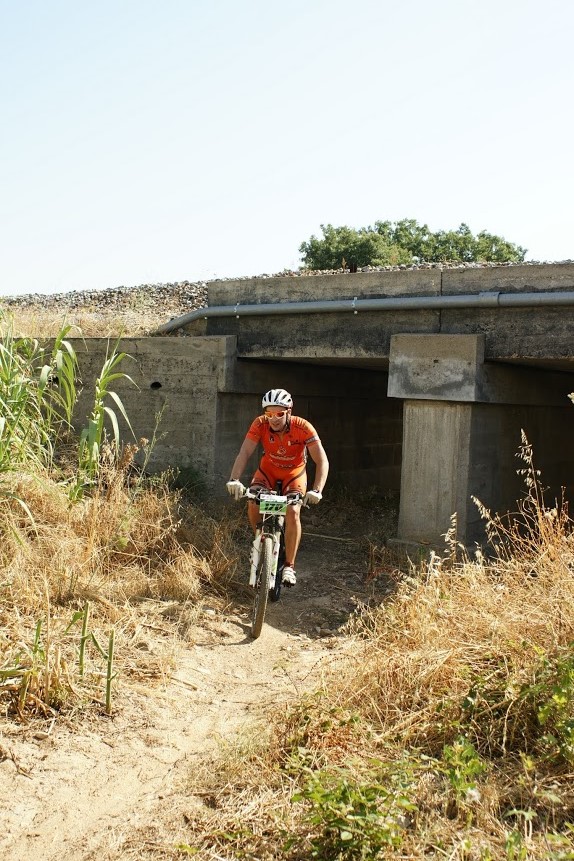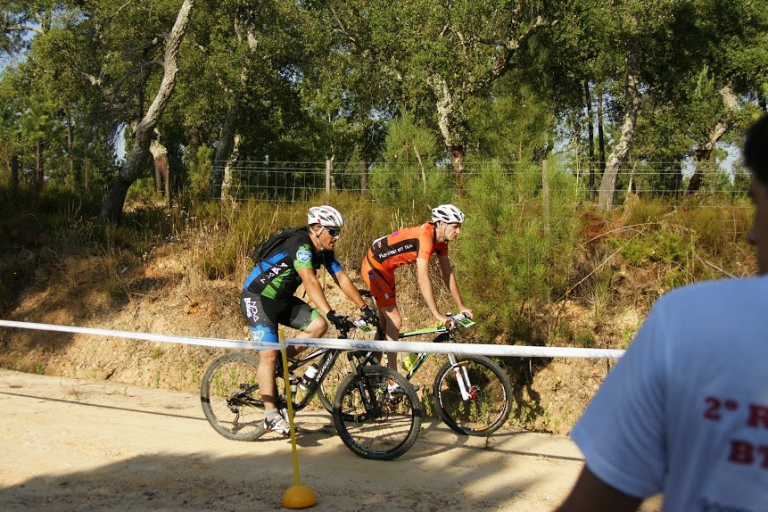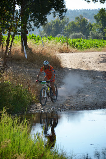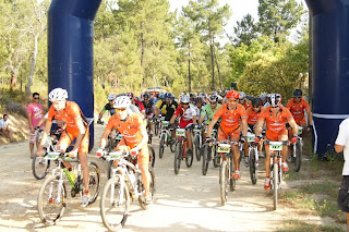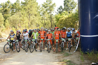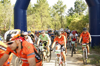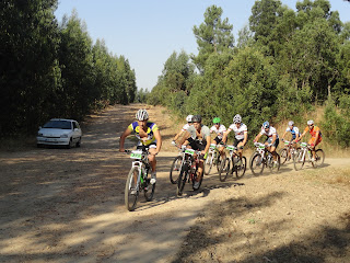 Partida a horas certas, e logo nos primeiros metros o João Serras a desisitir com o pedaleiro so "preso" por um unico parafuso, obrigando-o a desisitir, partida rapida e em terreno rolante com sobe e desce constante com alguma areia e pedra roliça que tornava o percurso "matreiro", era necessario muit atenção, até aos primeiros 14km em comum onde ja alguns participantes tinham desisitido com quebras de tensao devido ao calor que já se fazia sentir.